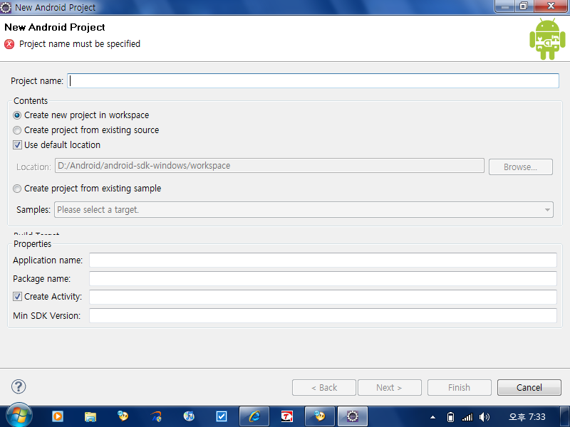 그림보시면 이클립스 프로젝트 실행시에 빌드 타겟부분을 클릭을 못합니다 넷북이라 .. ㅠㅠ