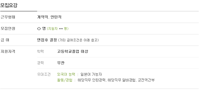 일본어 가능자와 해당직무 인턴경력, 해당직무 알바경험,군전역간부를