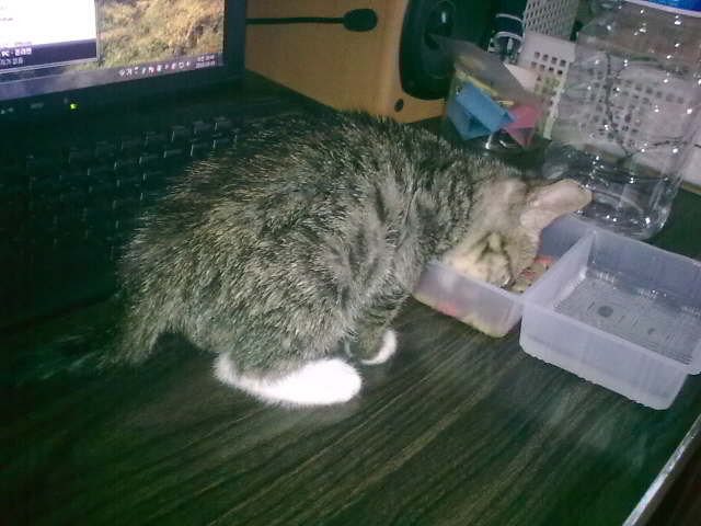책상위에 먹을걸 올려주니 잘 먹더군요~ ^.^