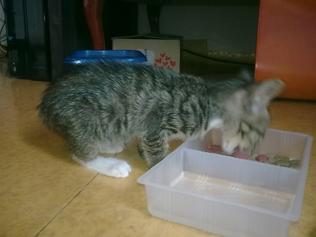 맛나게 잘 먹네요.... 사료 말고 다른 것도 먹이고 싶은데 꾹 참고 있습니다. ^-^